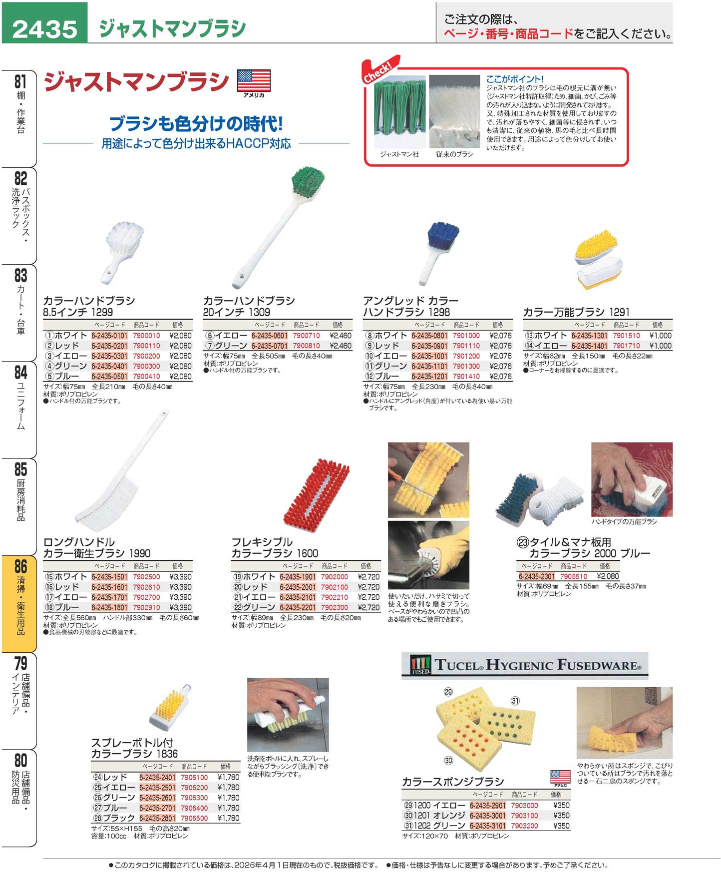 ジャストマン タイル&マナ板用 カラーブラシ 2000 青(90)