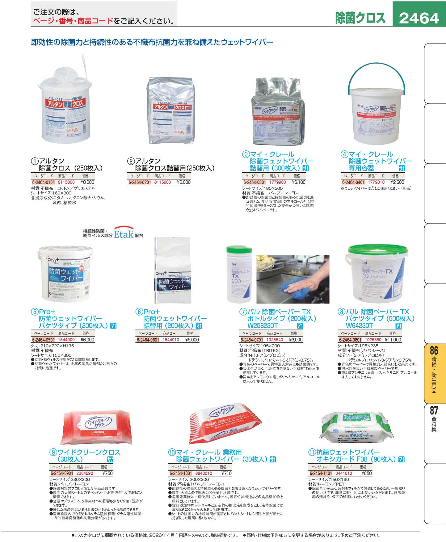 アルタン 除菌クロス詰替用(250枚入)(90)