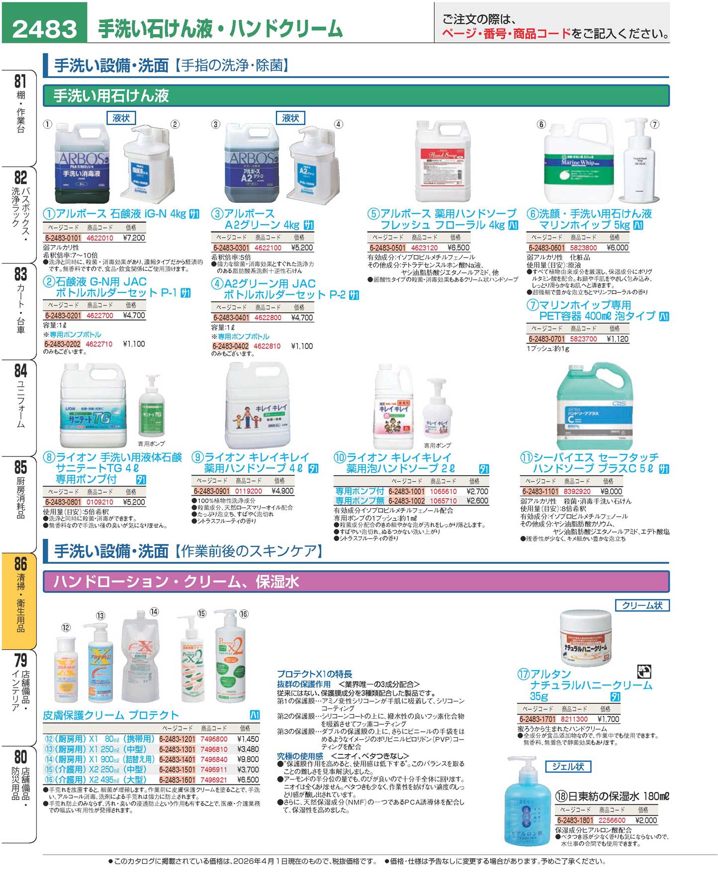 皮膚保護クリーム(厨房用)プロテクトX1 80ml(携帯用)(150)