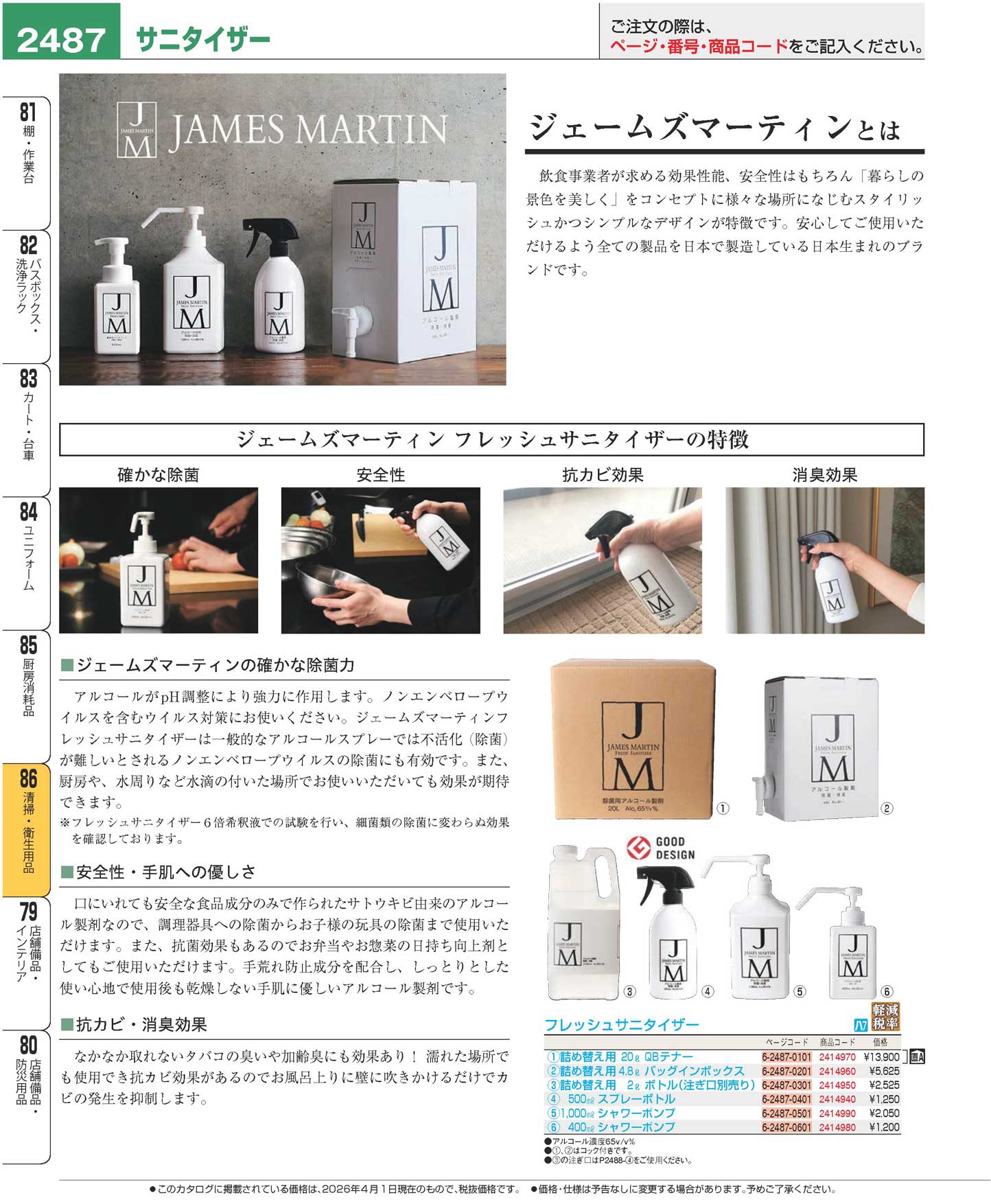 ジェームズマーティン フレッシュサニタイザー シャワーポンプ 400ml 30004(150)(商品番号2414980)