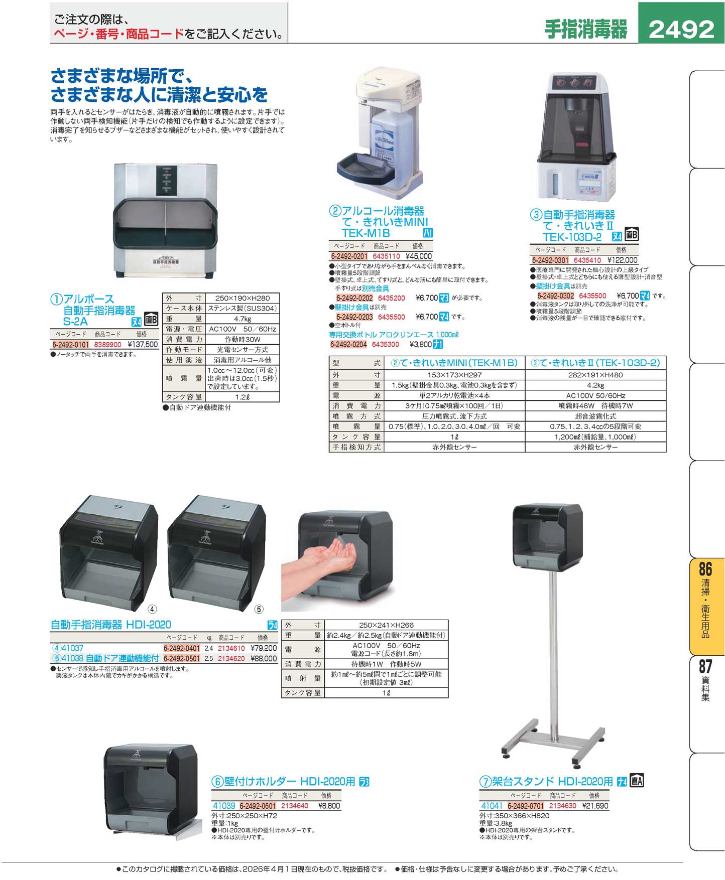 自動手指消毒器 HDI-2020 自動ドア連動機能付 41038(170)