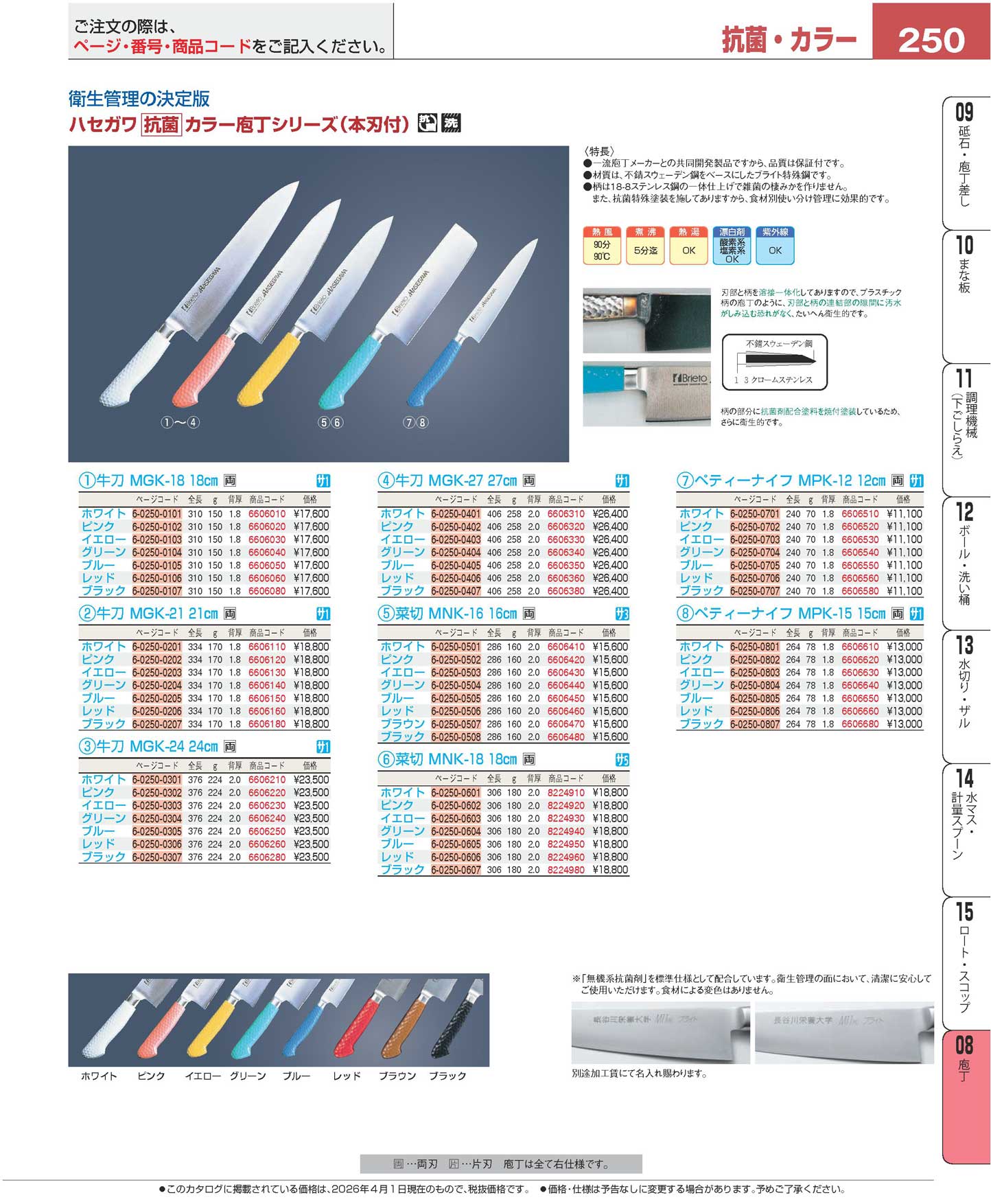 ハセガワ 抗菌カラー庖丁 牛刀 MGK-18 18cm ホワイト(120)