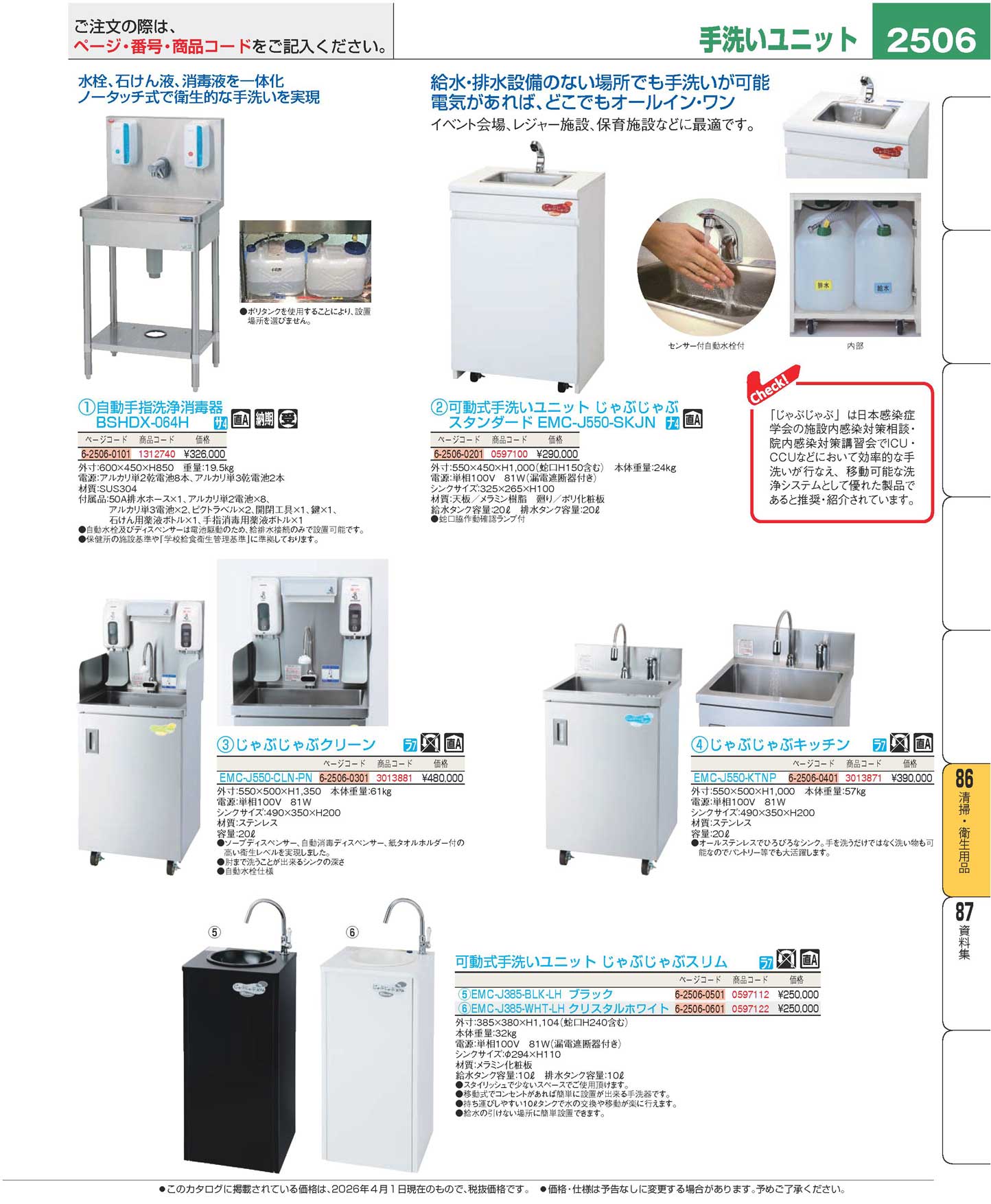 可動式手洗いユニット じゃぶじゃぶスタンダード EMC-J550-SKJN(140)
