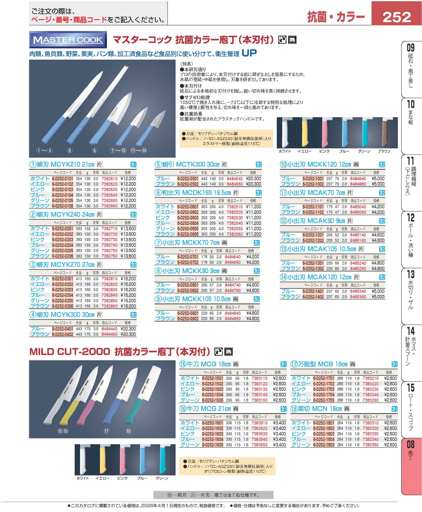MILD CUT-2000 カラー庖丁 牛刀 MCG 18cm ホワイト(110)