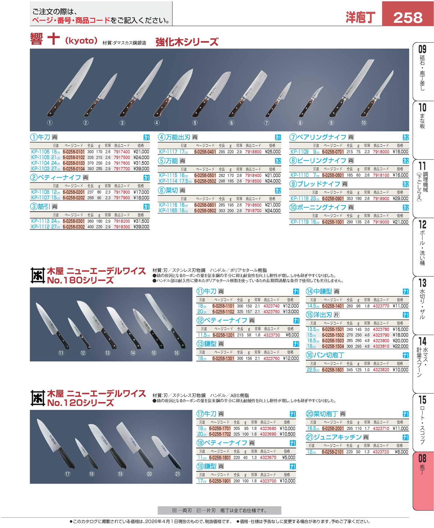 木屋 ニューエーデルワイス No.120 牛刀 20cm(140)