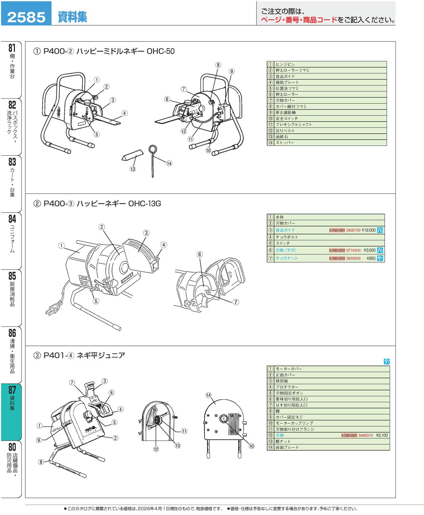 ハッピー ネギーOHC-13E用 食品ガイド(はす切可能)ステンレス製(150)(商品番号3935730)