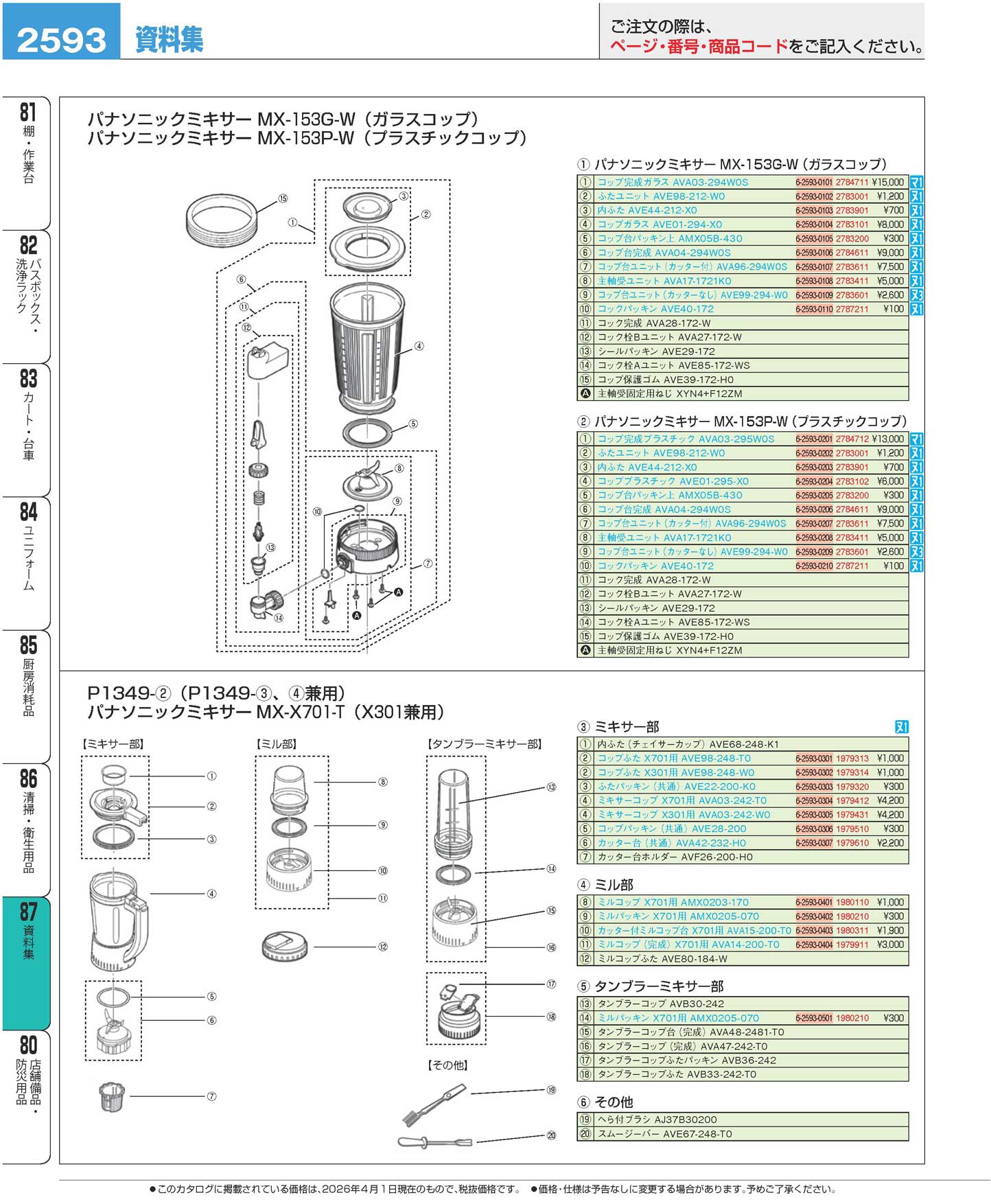 ミキサー153P用 プラスチックコップ完成品(AVA03-295W0S)(160)