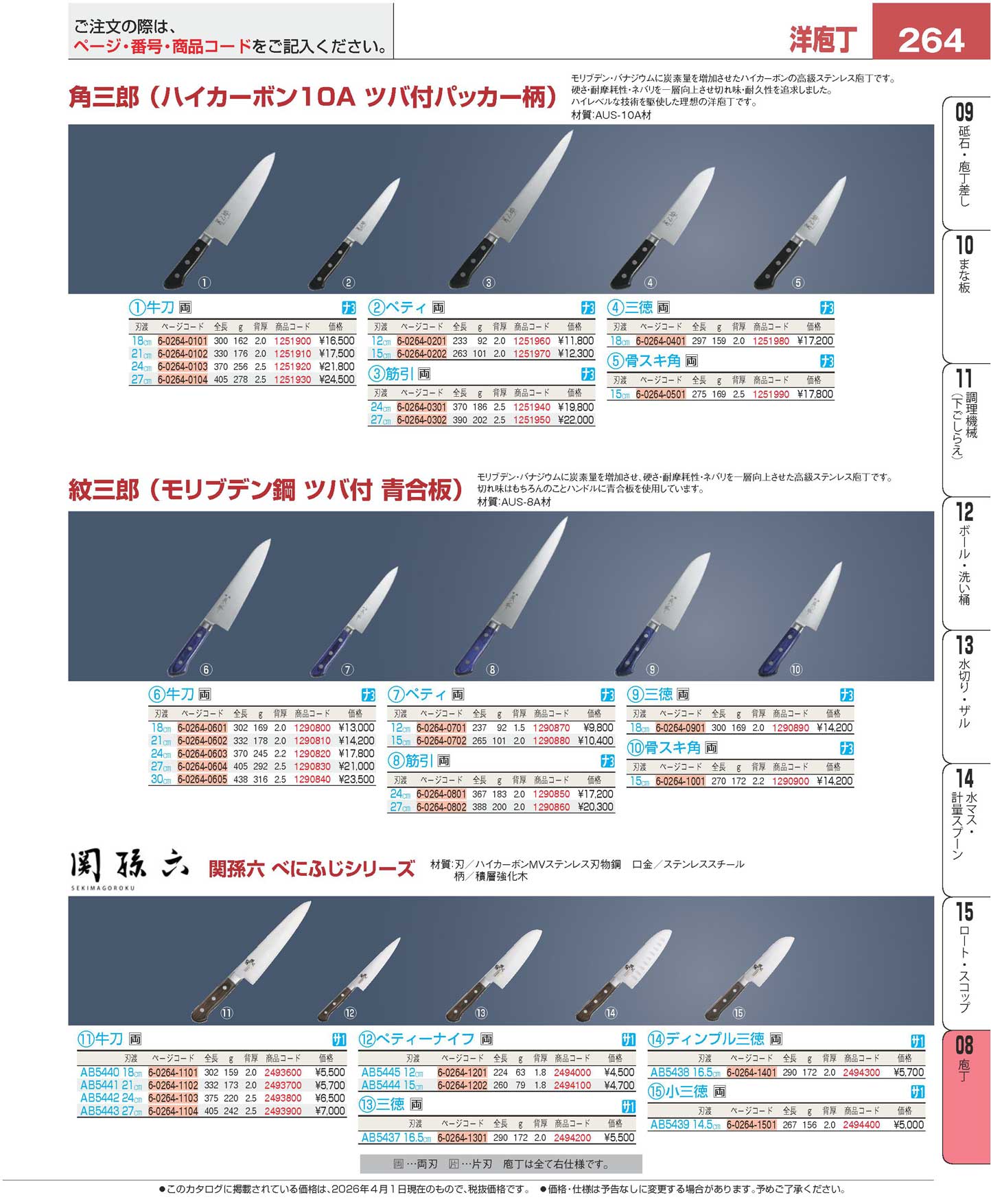 関孫六 べにふじ 三徳 165mm AB5437(120)
