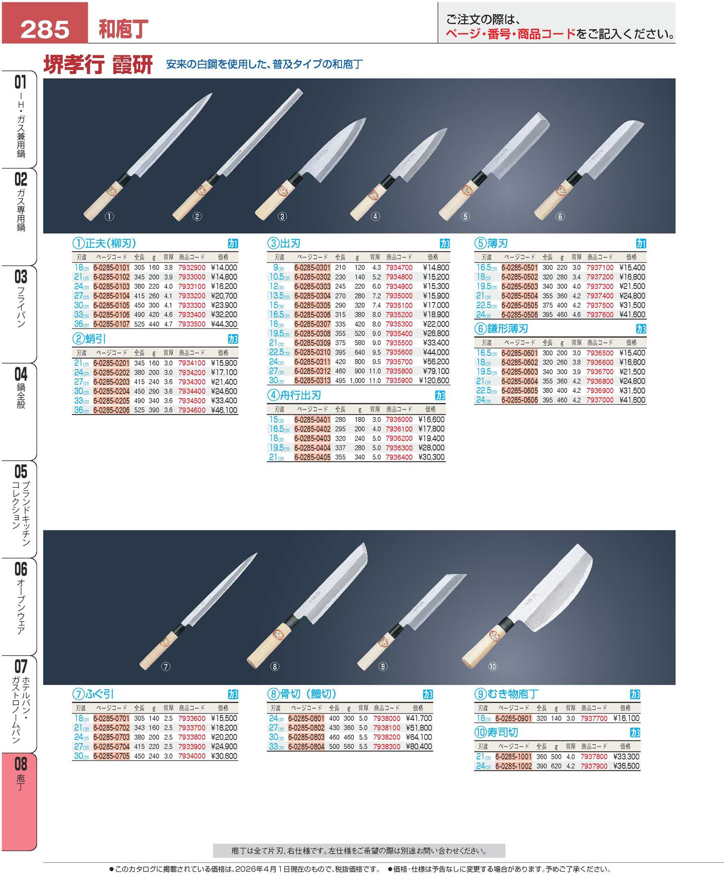 堺孝行 霞研 薄刃 24cm 06067(110)