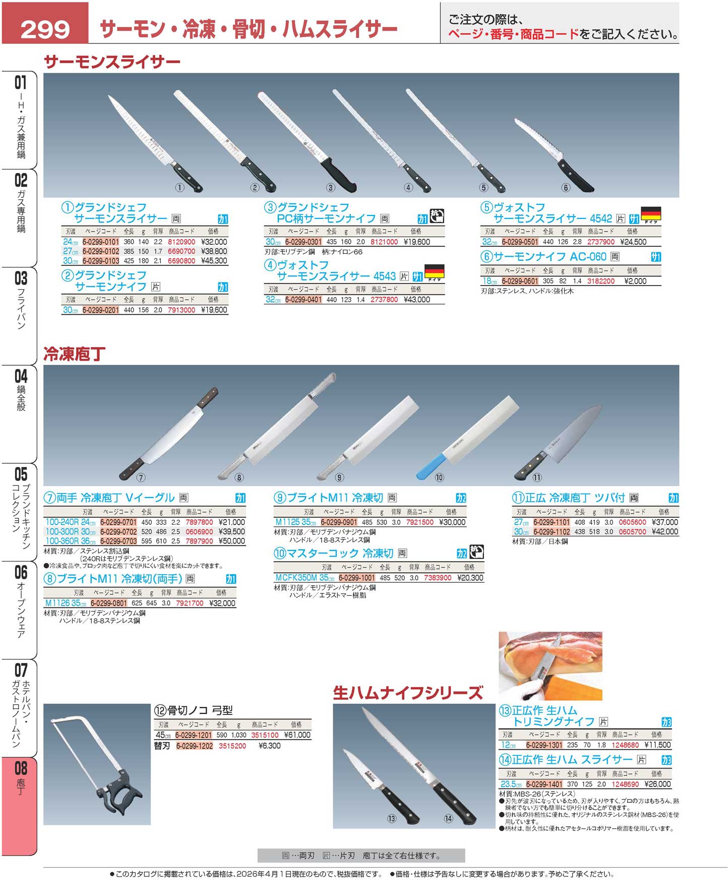 正広作(日本鋼・ツバ付)冷凍庖丁 30cm 幅広(110)