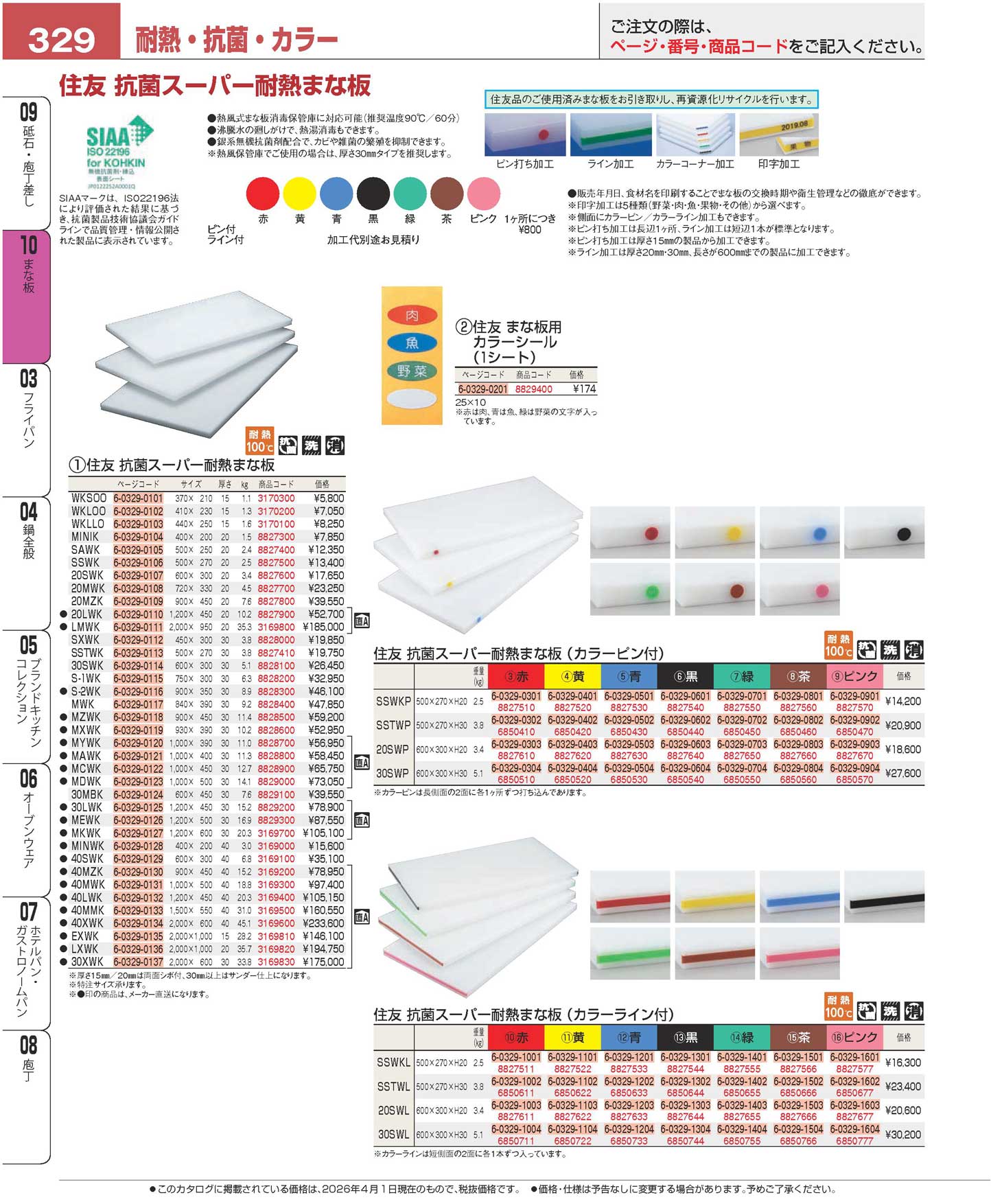 住友 抗菌スーパー耐熱まな板 WKLOO ピン1本付(長辺)黄(90)