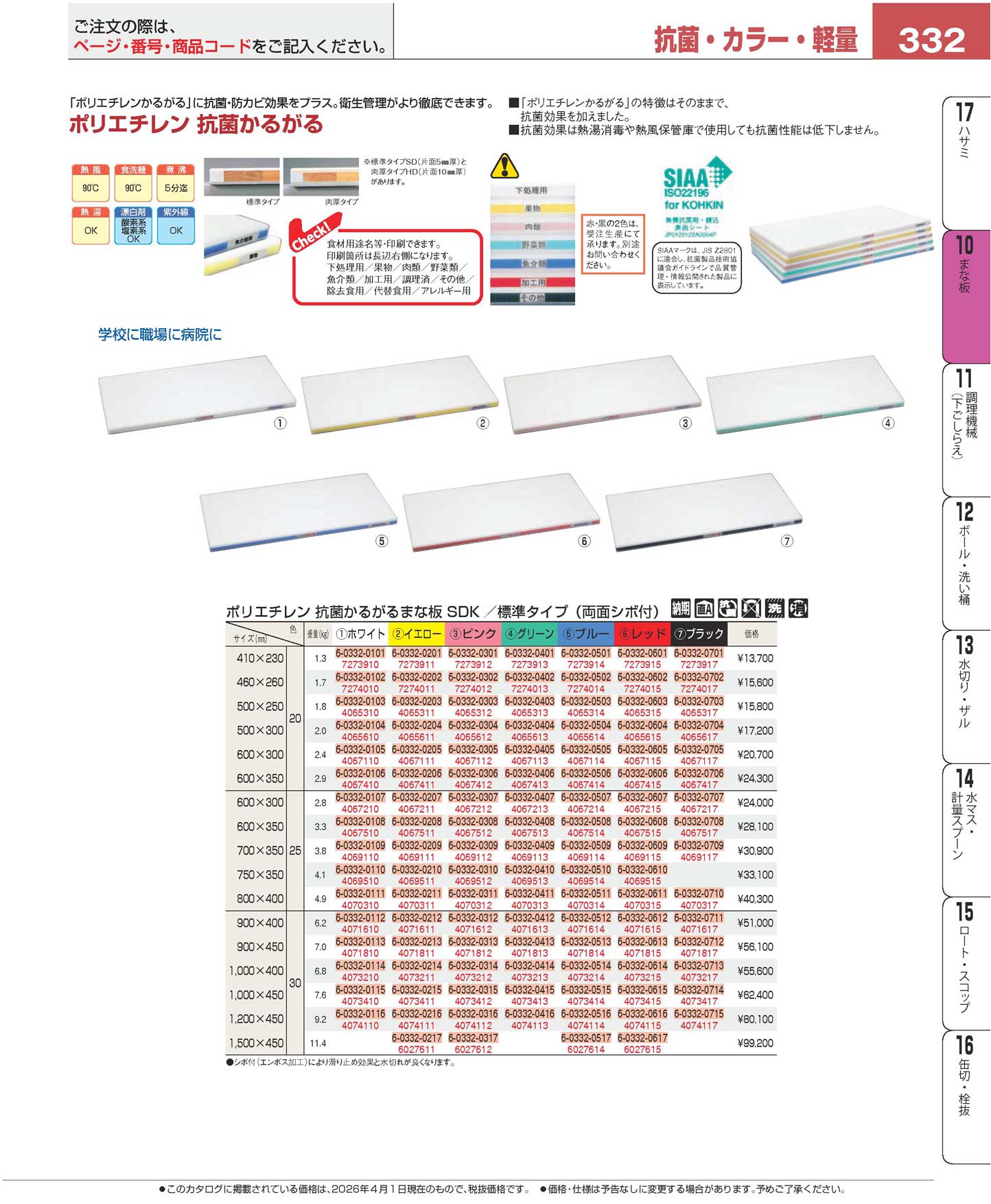 抗菌かるがるまな板 SDK 500×300×20 ホワイト(90)(商品番号4065610)