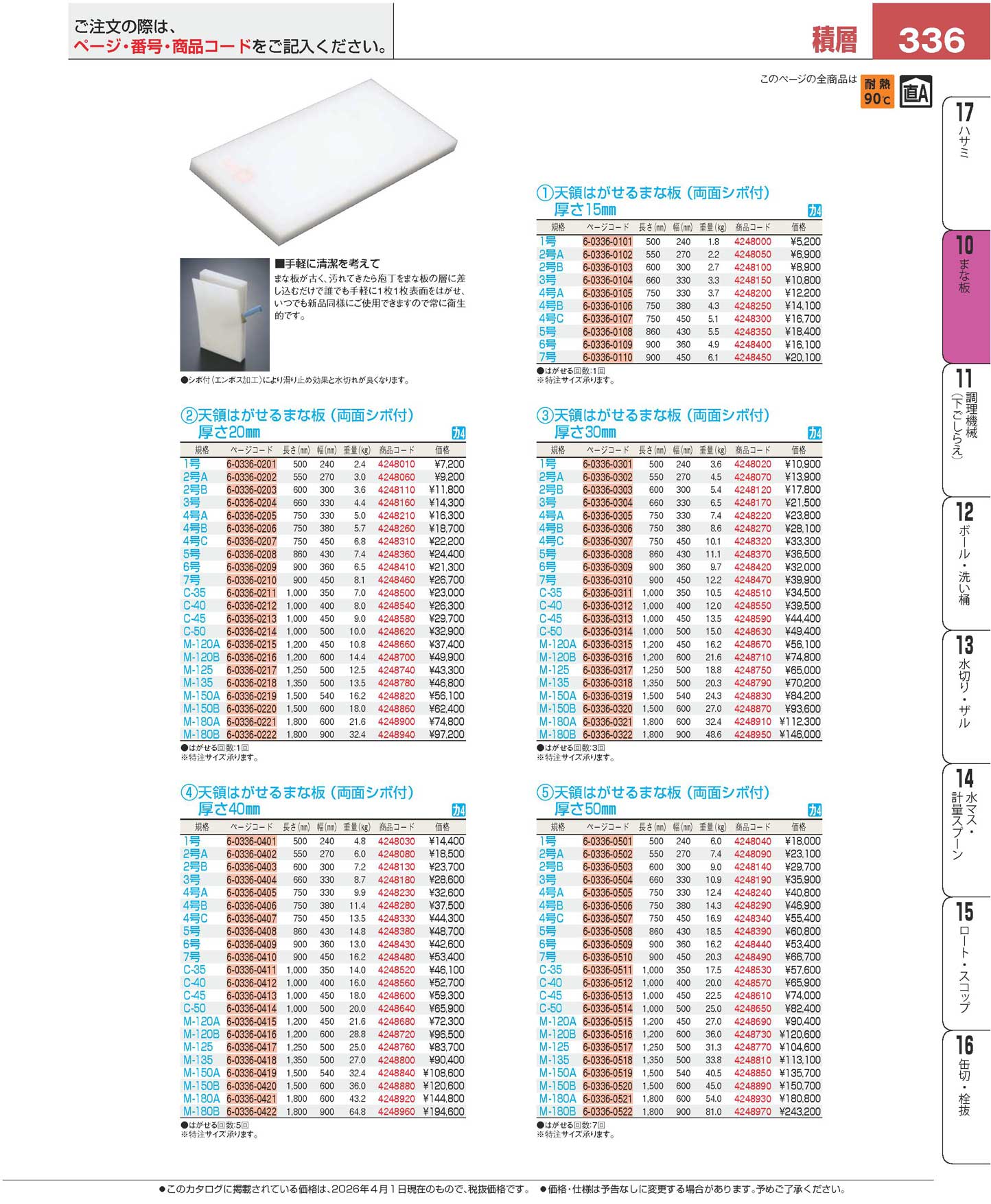 天領はがせるまな板 4号C 750×450×40 PC(110)