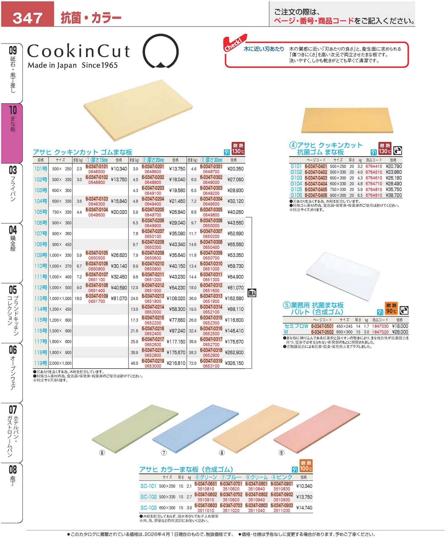 アサヒ カラーまな板(合成ゴム)SC-101 クリーム(130)