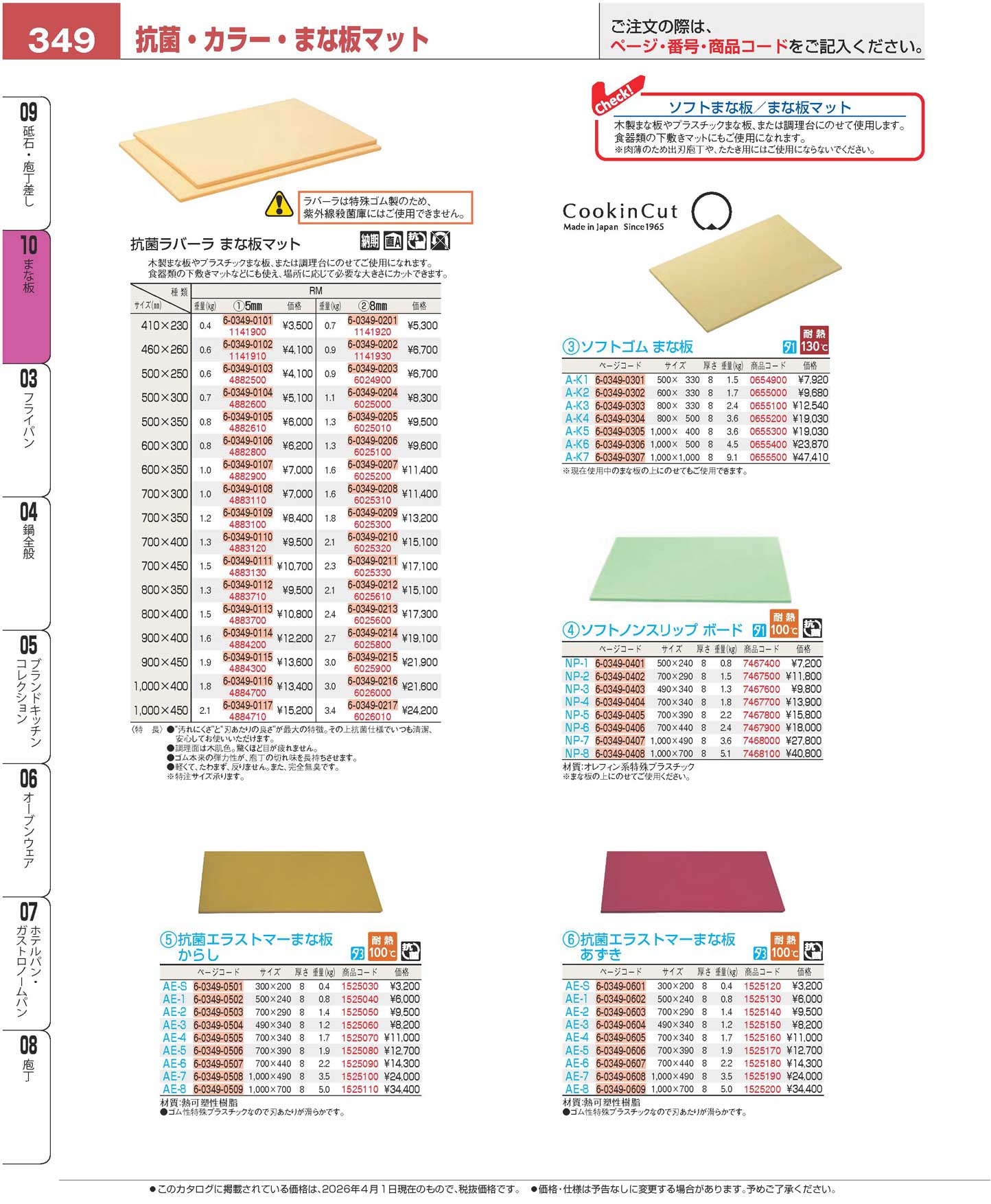 ソフトゴム まな板 A-K4 800×500×H8(130)(商品番号0655200)