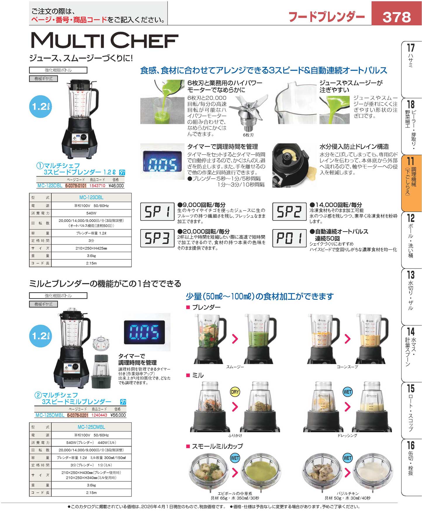 マルチシェフ 3スピードミルブレンダー MC-125DMBL(130)