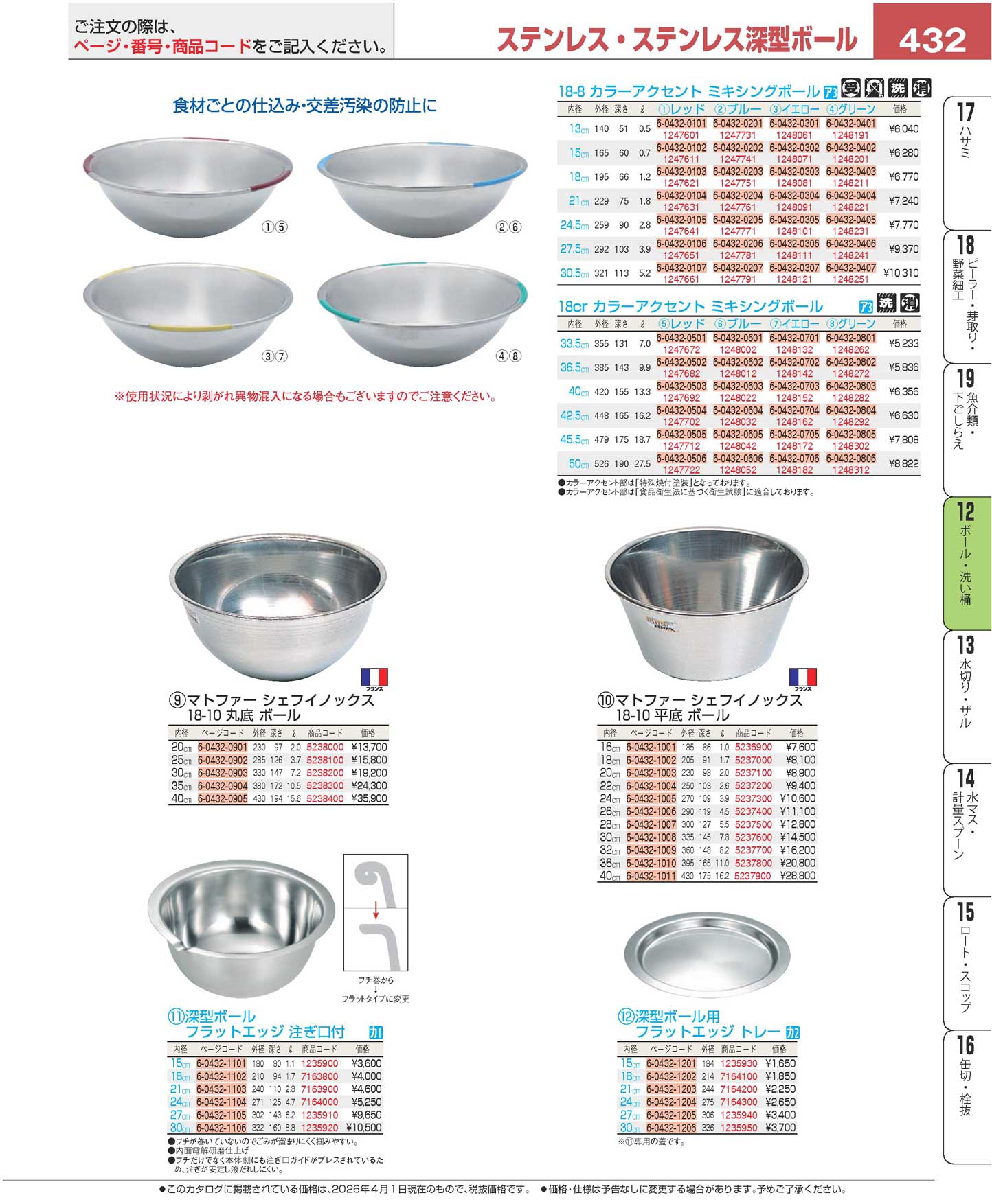 マトファー シェフイノックス 18-10 平底ボール 01652 18cm(90)