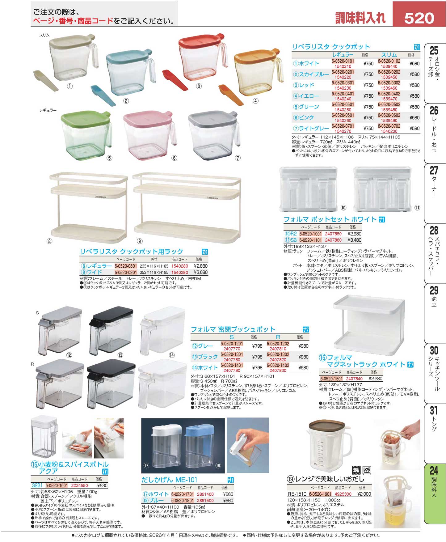 リベラリスタ クックポット スリム ホワイト GLIF001 144×75×H105(110)