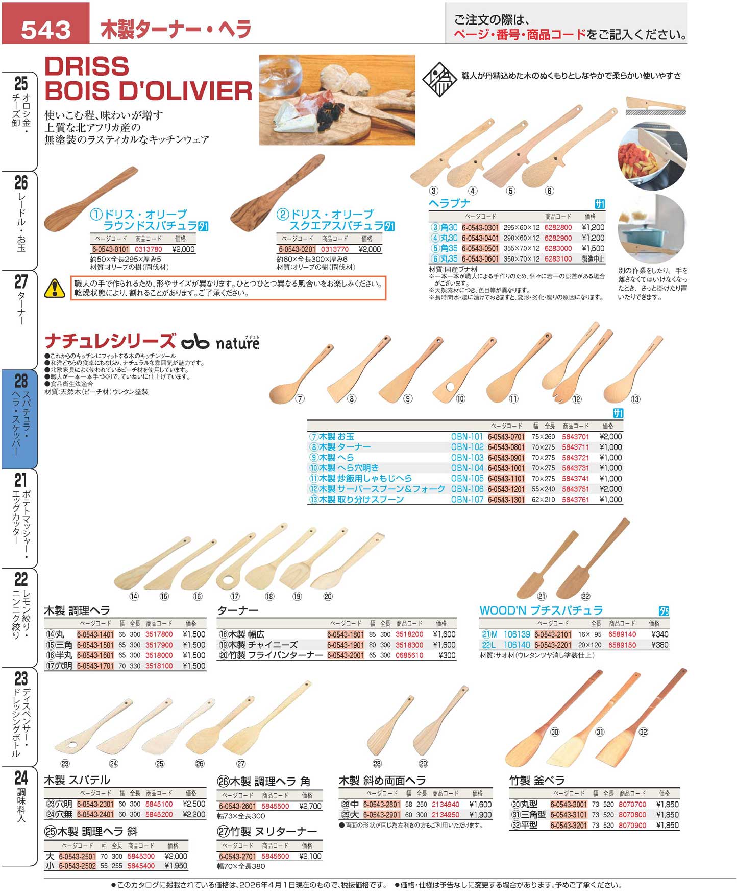 ナチュレ 木製 へら穴明き OBN-104(120)