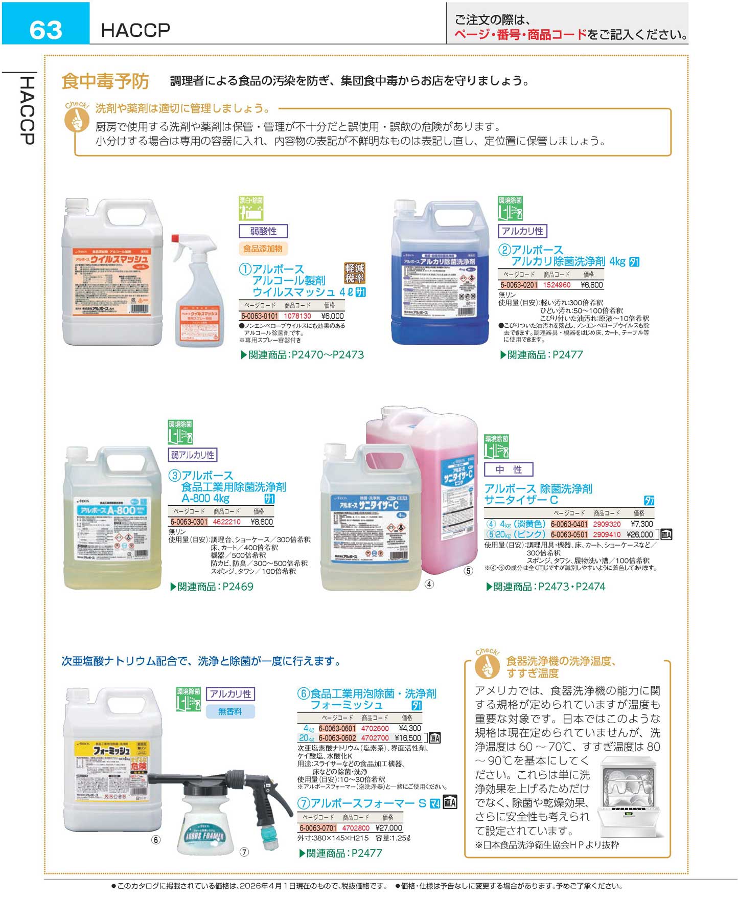 アルボース 食品工業用除菌洗浄剤 A-800 4kg 14590(120)