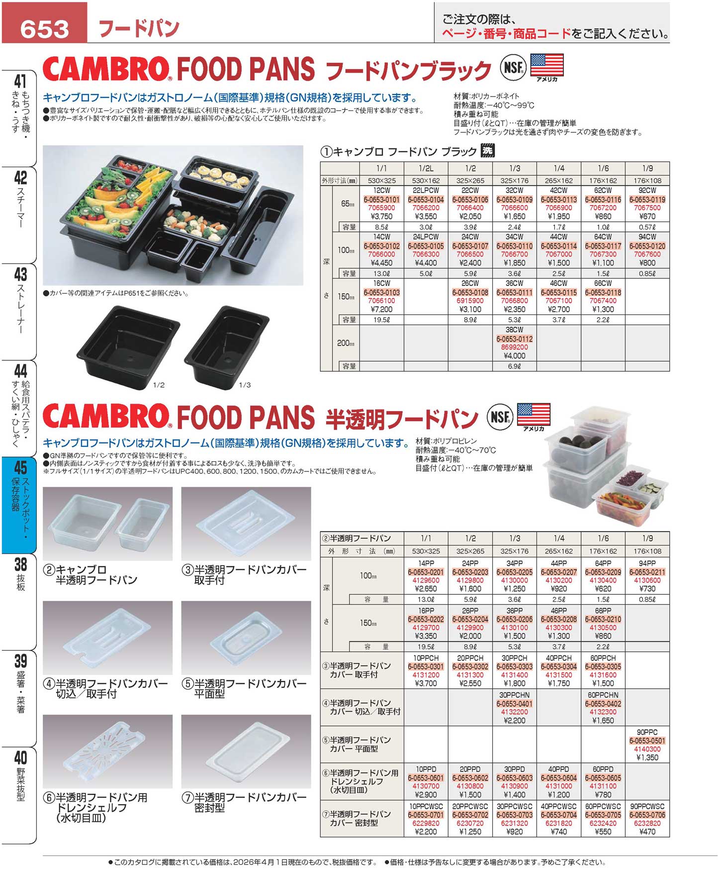 キャンブロ 半透明フードパン 1/3 100mm 34PP(190)(90)