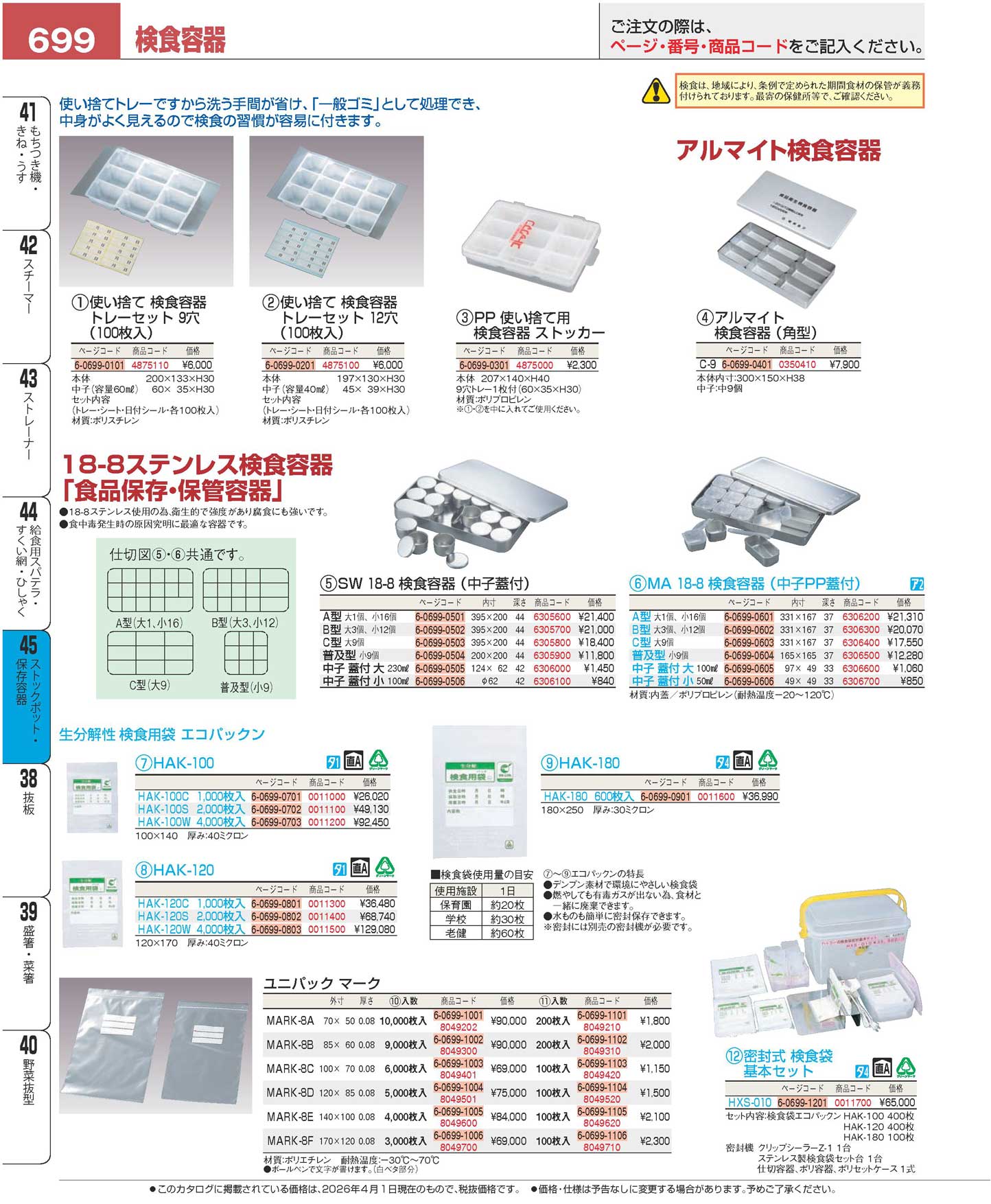 密封式 検食袋 基本セット HXS-010(130)