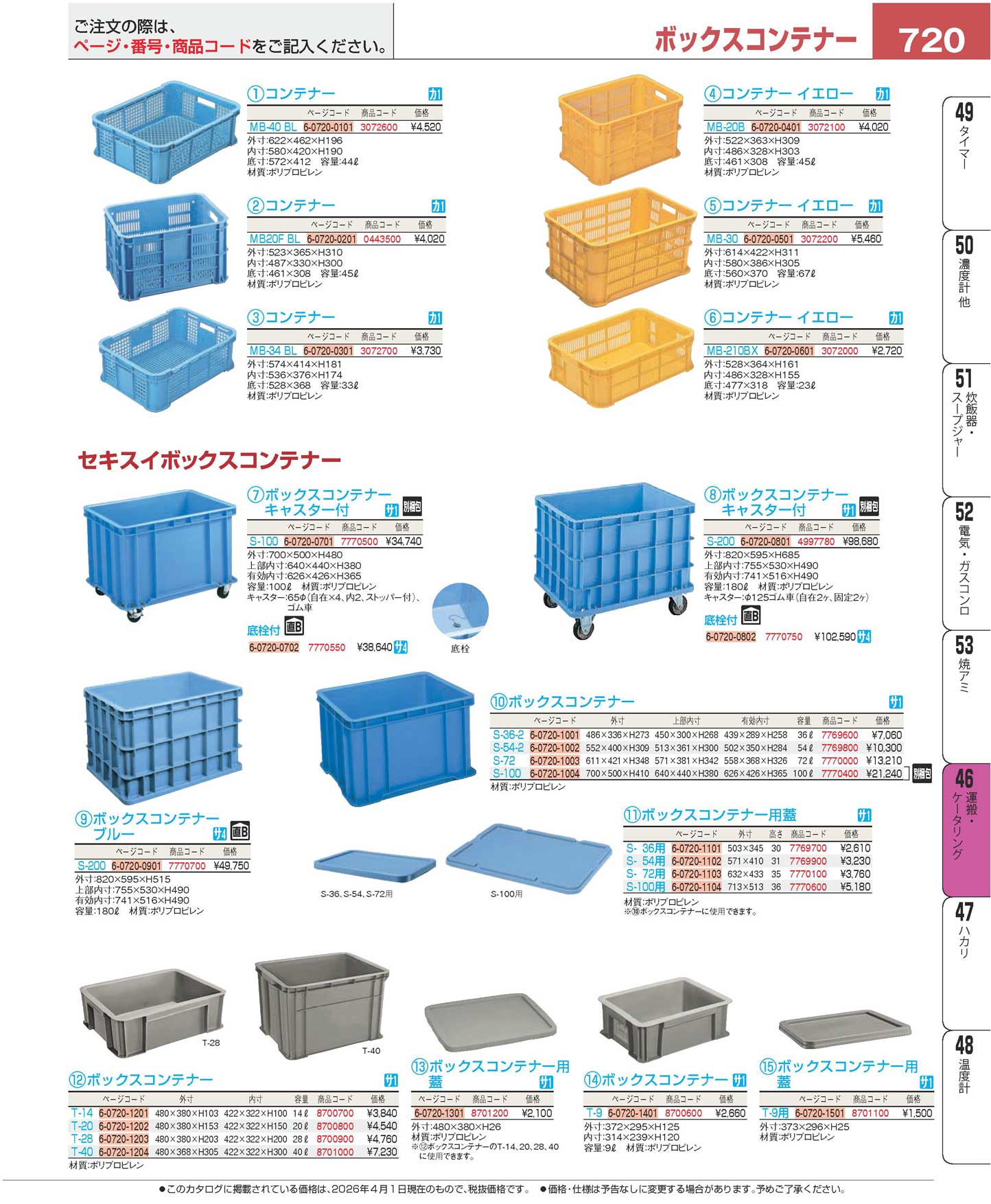 セキスイ ボックスコンテナー S-200 キャスター付(120)