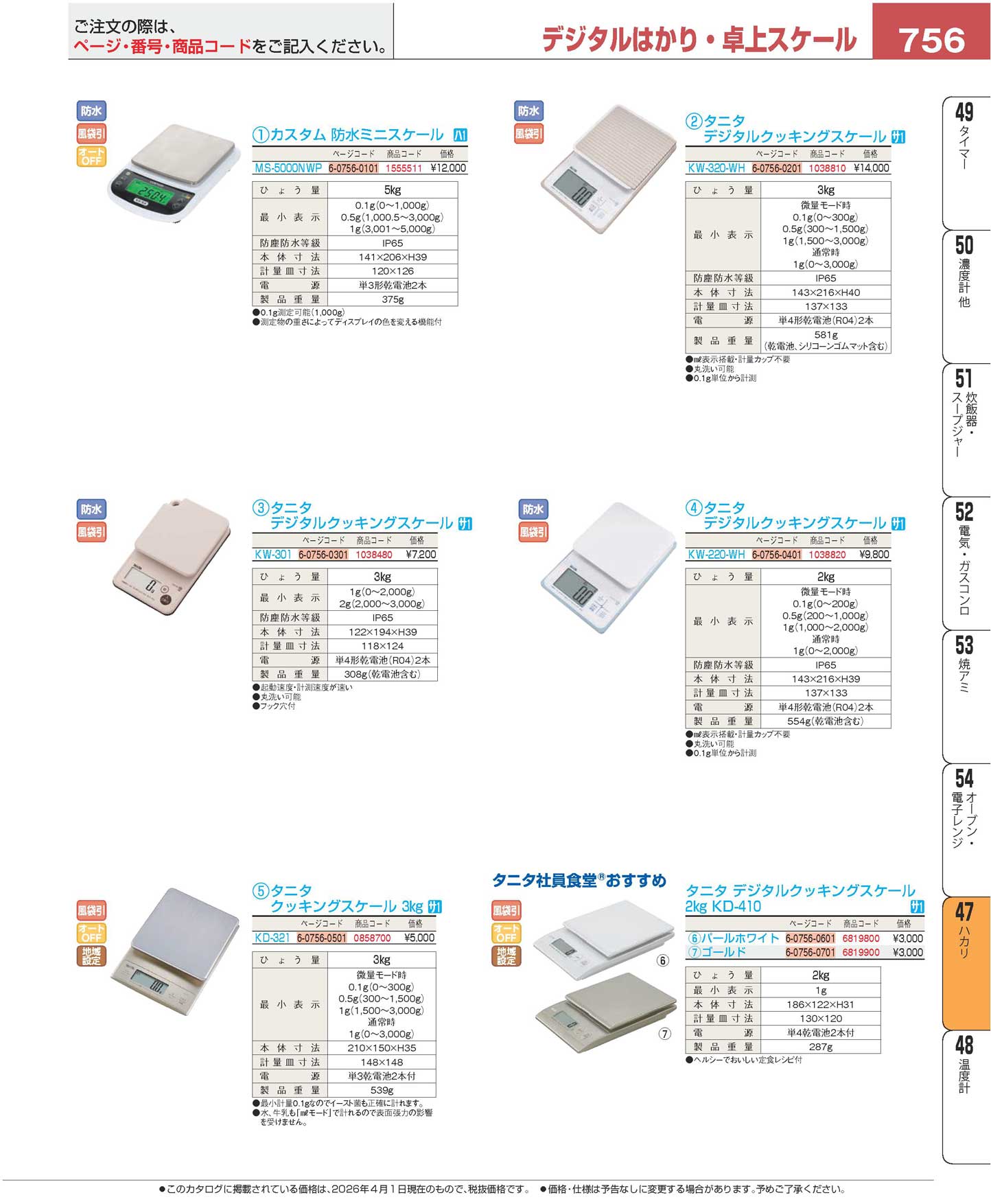 タニタ 洗えるクッキングスケール KW-302-PK(120)