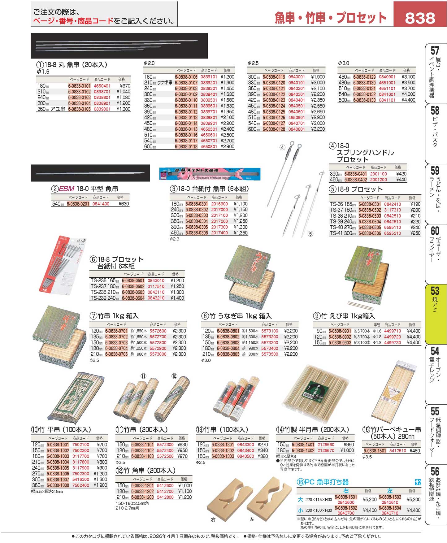 18-0 台紙付 魚串(6本組)300mm(90)(商品番号2017100)