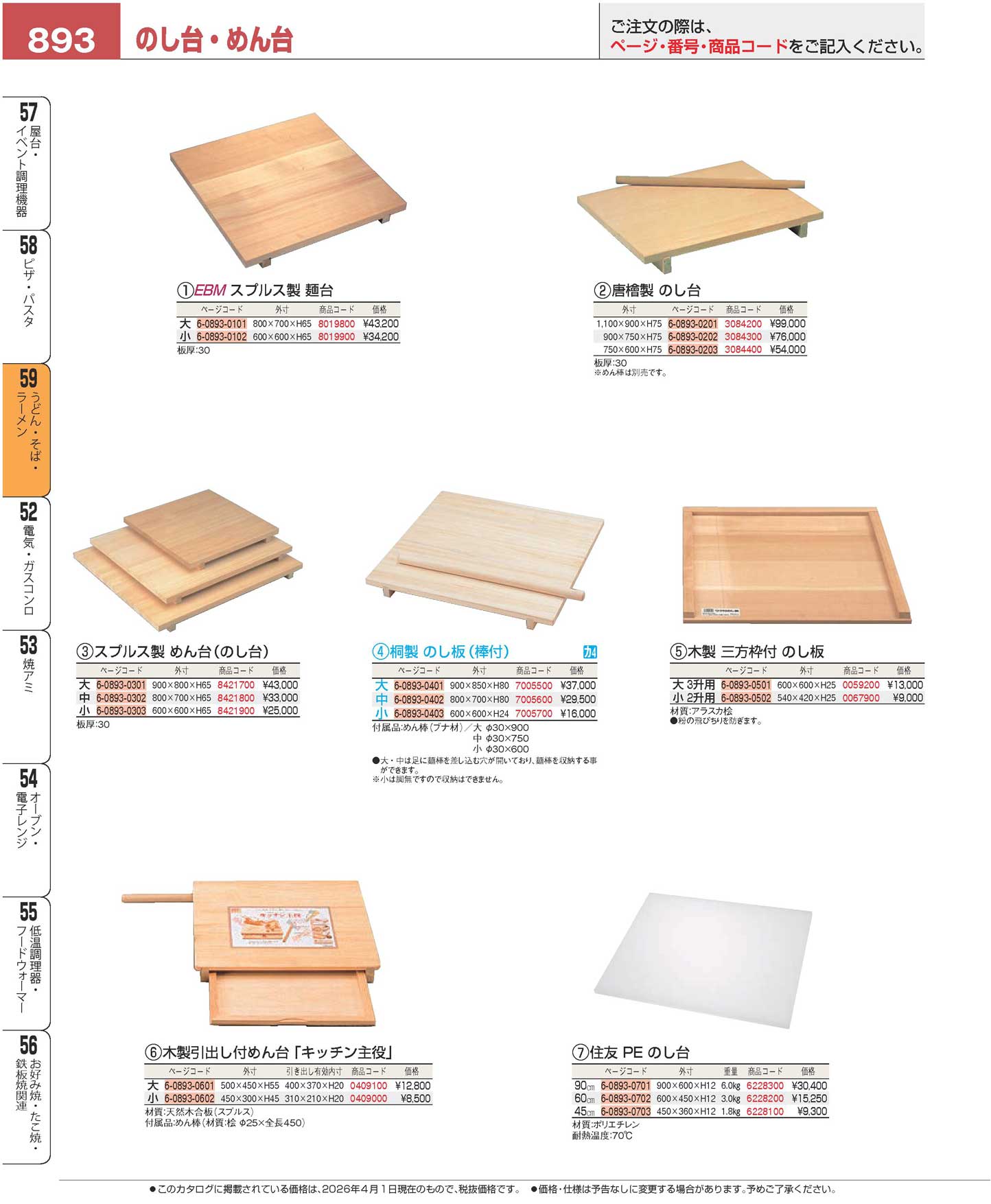 EBM スプルス製 麺台 大(800×700×H65)(90)