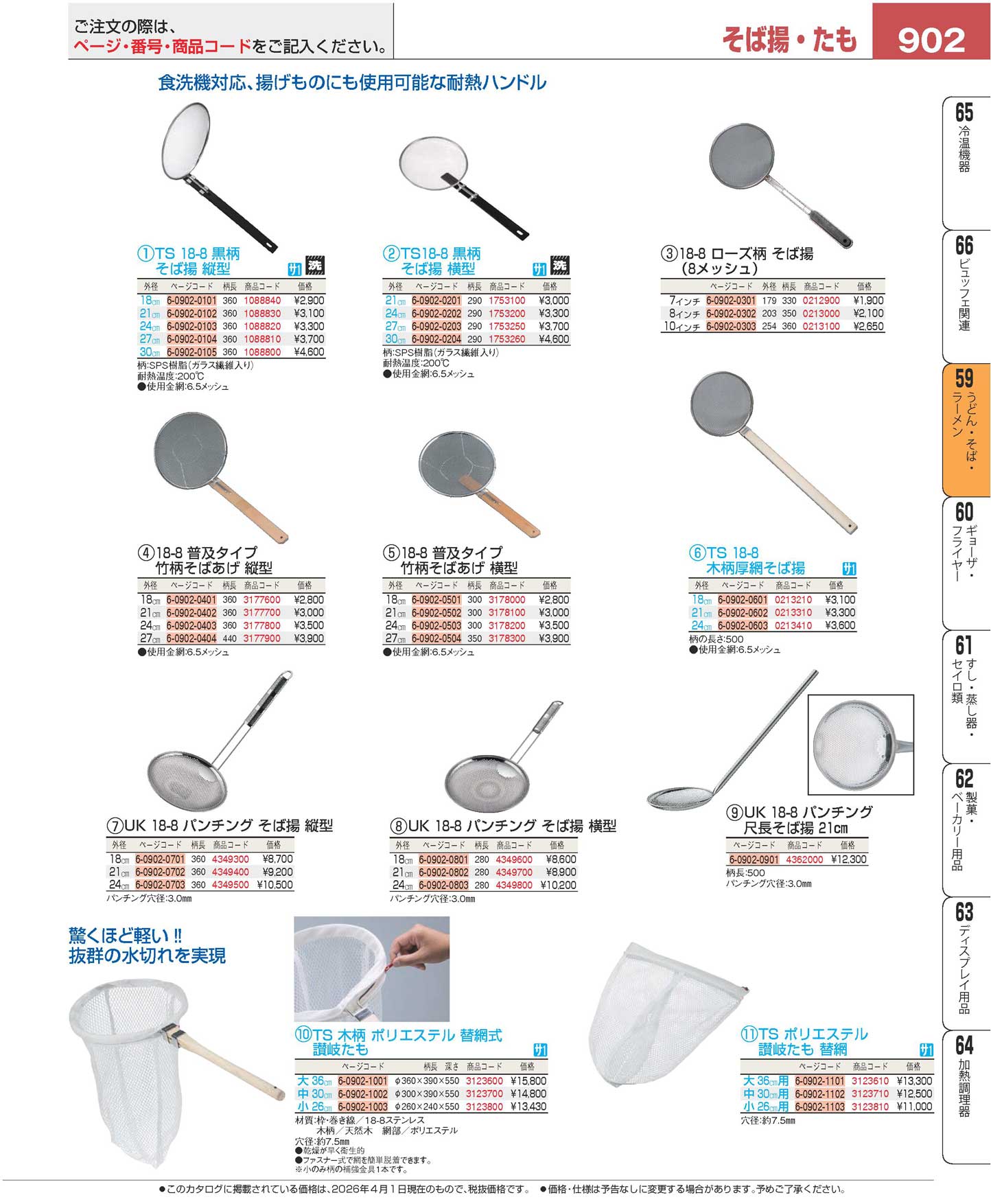 TS 18-8 木柄 厚網そば揚 18cm 10142(120)