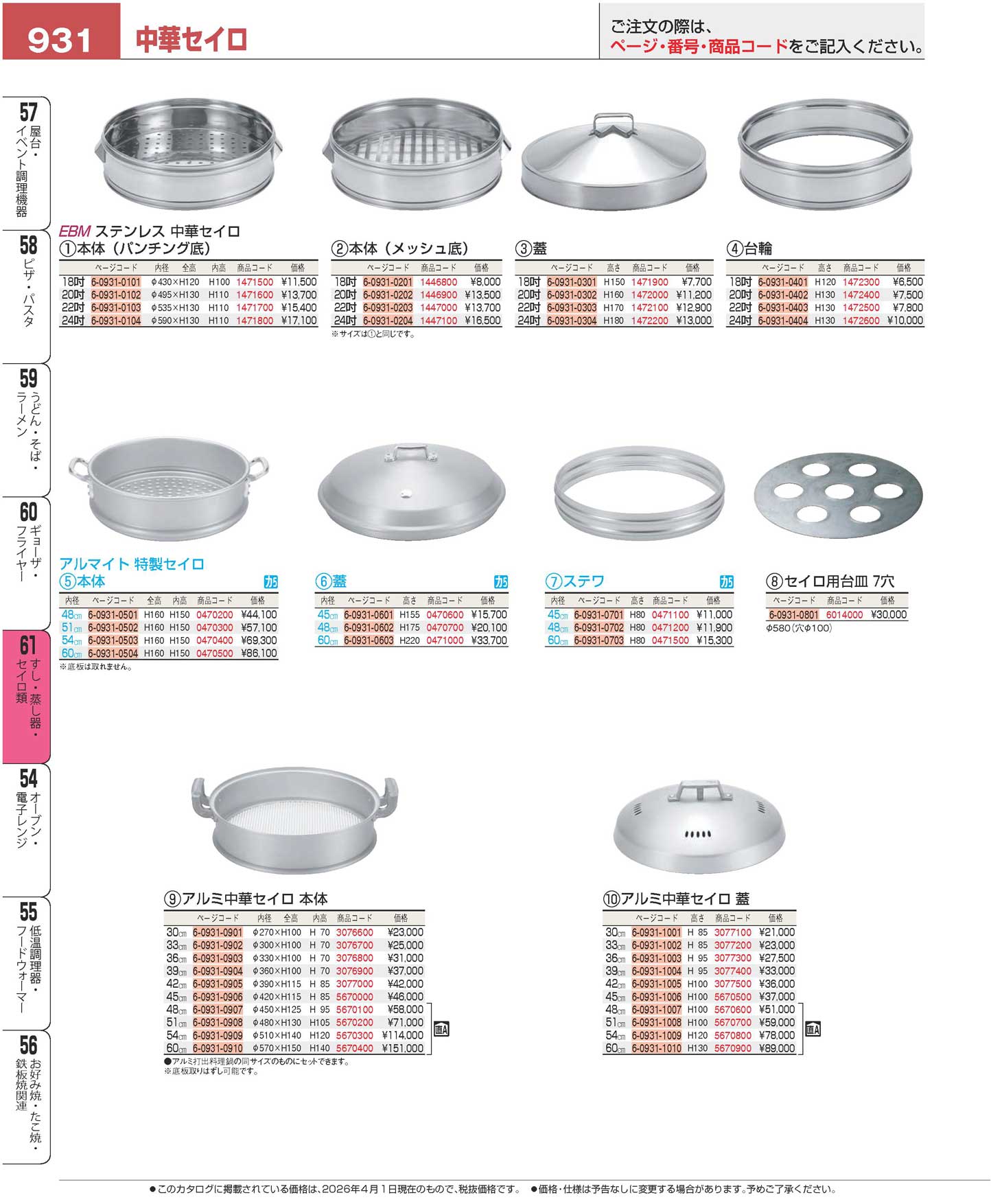 EBM ステンレス 中華セイロ 蓋 24吋(90)