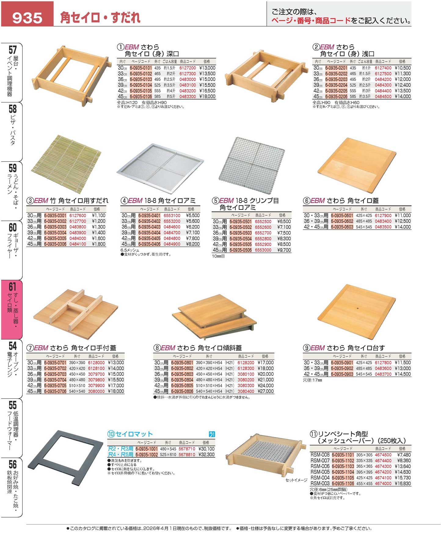 EBM さわら 角セイロ傾斜蓋 45cm用(540×540)(90)