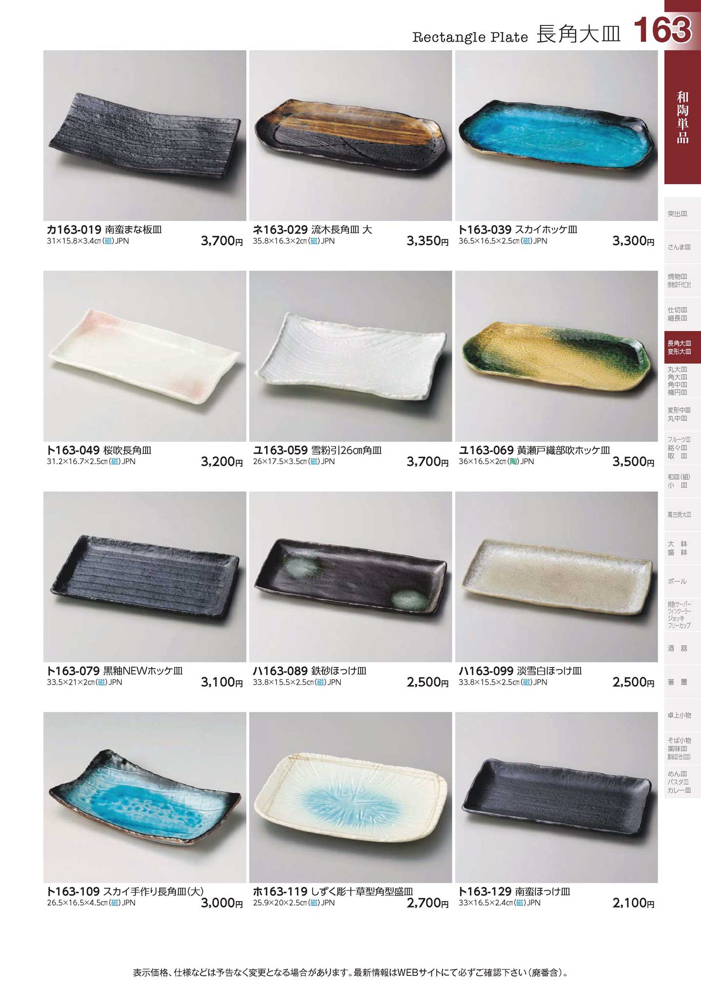 スカイ手作り長角皿(大)(商品番号ト163-109)