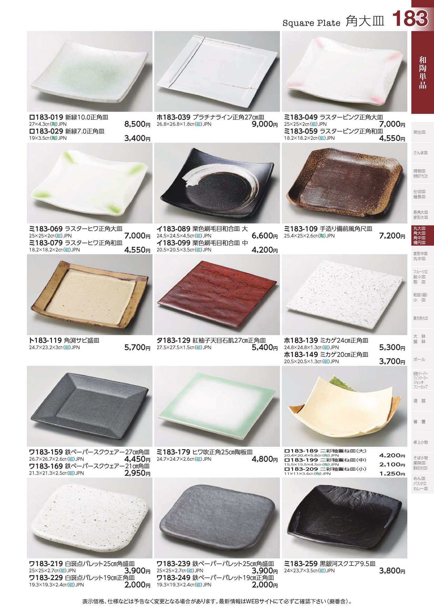 20.5×20.5×1.3cmJPN磁器 618126