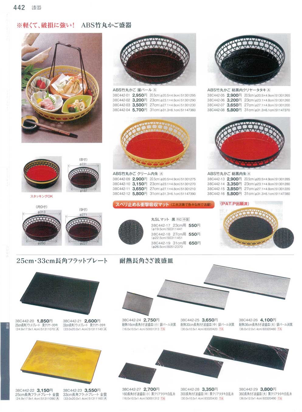ABS竹丸かご 総黒内朱 27cm