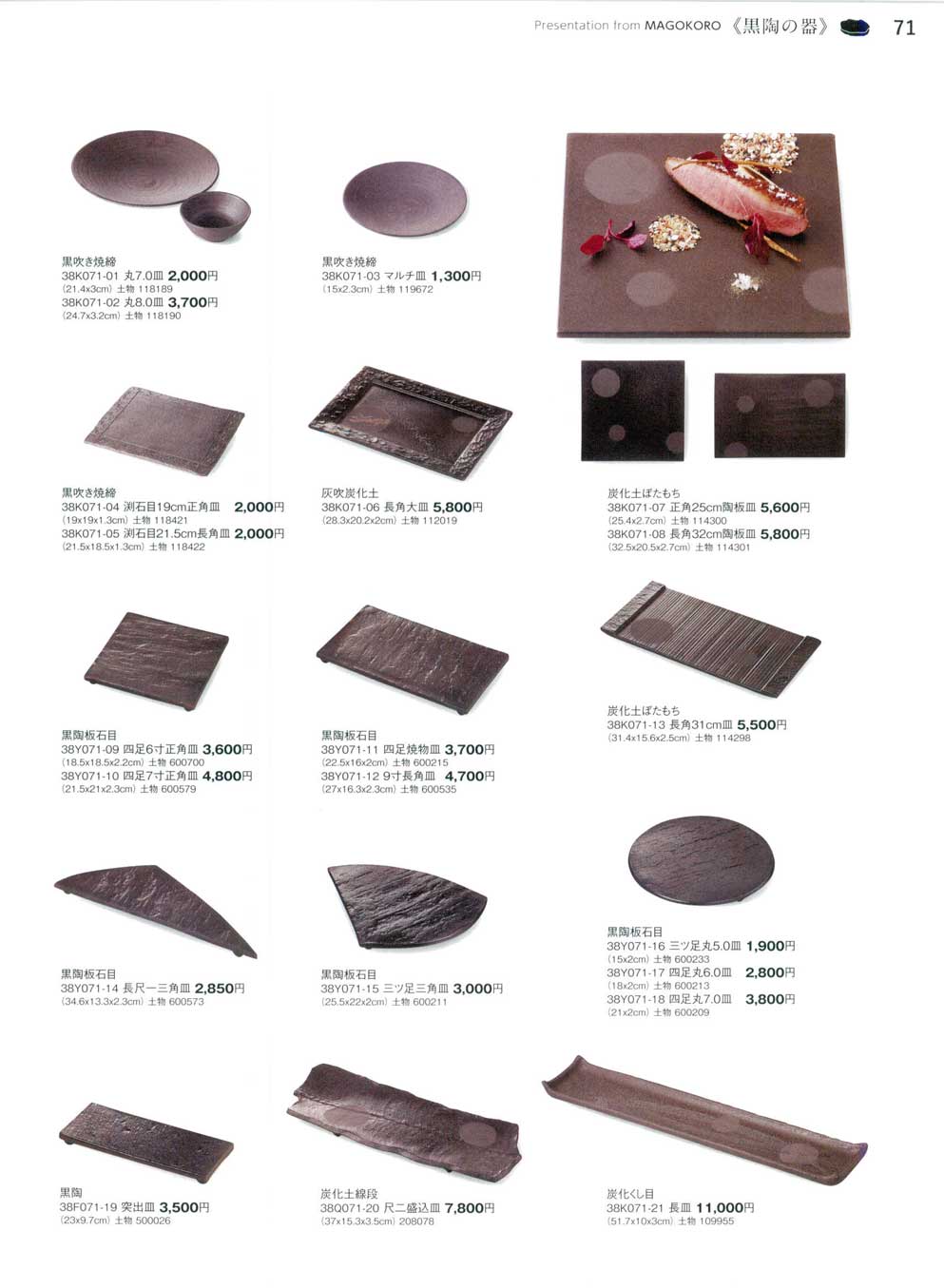 黒陶板石目 長尺一三角皿